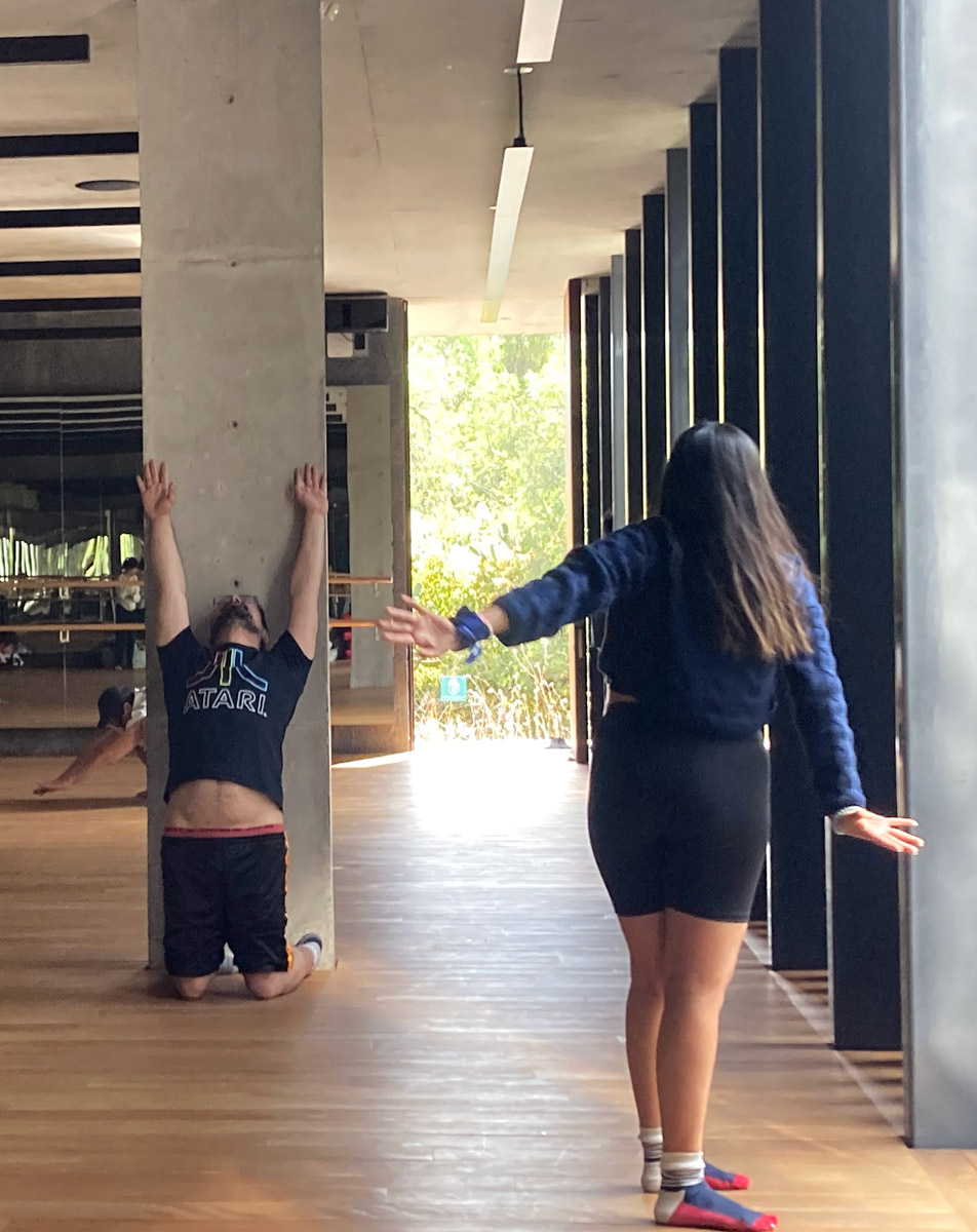 Este laboratorio explora el movimiento y los cambios en la percepción del cuerpo al ir hacia atrás y desconfigurar el orden cronológico del tiempo. Tomamos como punto de partida la cosmovisión de algunos pueblos indígenas y textos de Silvia Rivera Cusicansqui, socióloga y activista boliviana.